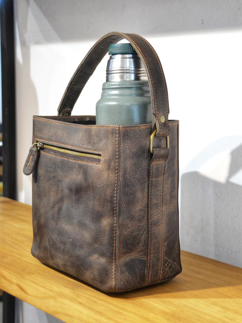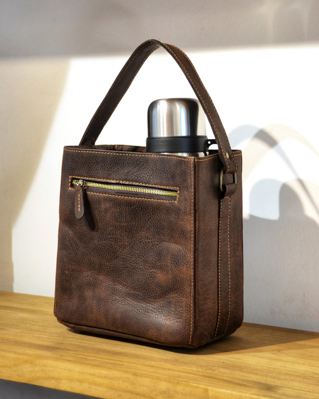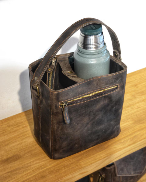 Les presentamos nuestra Matera modelo Colon, con su clasico formato tipo canasta que te permite tener siempre tu mate a mano, pero con un toque moderno que nos caracteriza y un cuero con mucho caracter. Esta confeccionada integramente en excelente cuero vacuno argentino, su estructura es semi rigida para que siempre mantenga su forma y su interior viene forrado en tela negra impermeable.