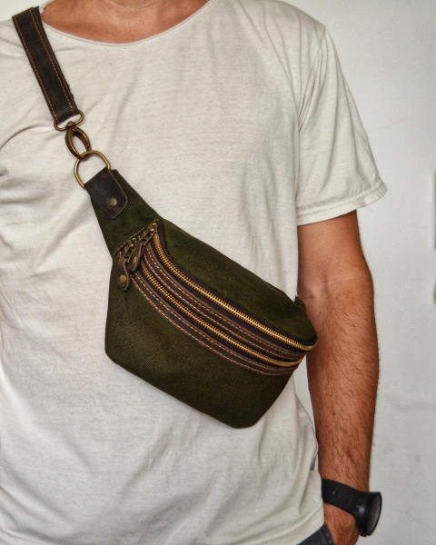 Diseñada para quienes buscan comodidad y estilo, esta riñonera está confeccionada en lona de algodón y cuero vacuno engrasado, combinando resistencia y flexibilidad. Sus herrajes en bronce viejo y cierres YKK, los mejores del mercado, garantizan durabilidad y seguridad.